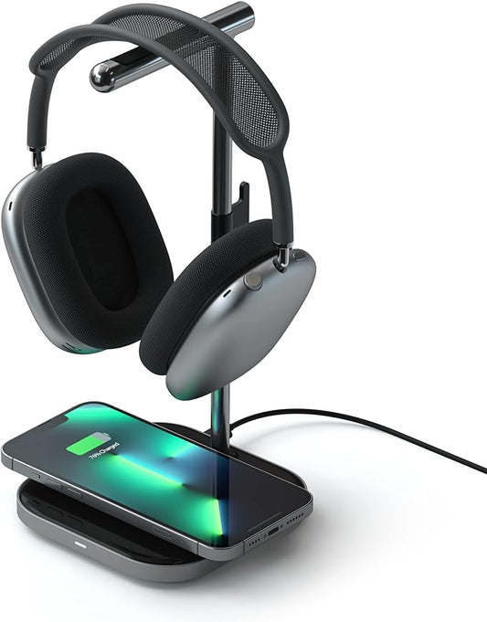 cargador inalámbrico con soporte para audífonos